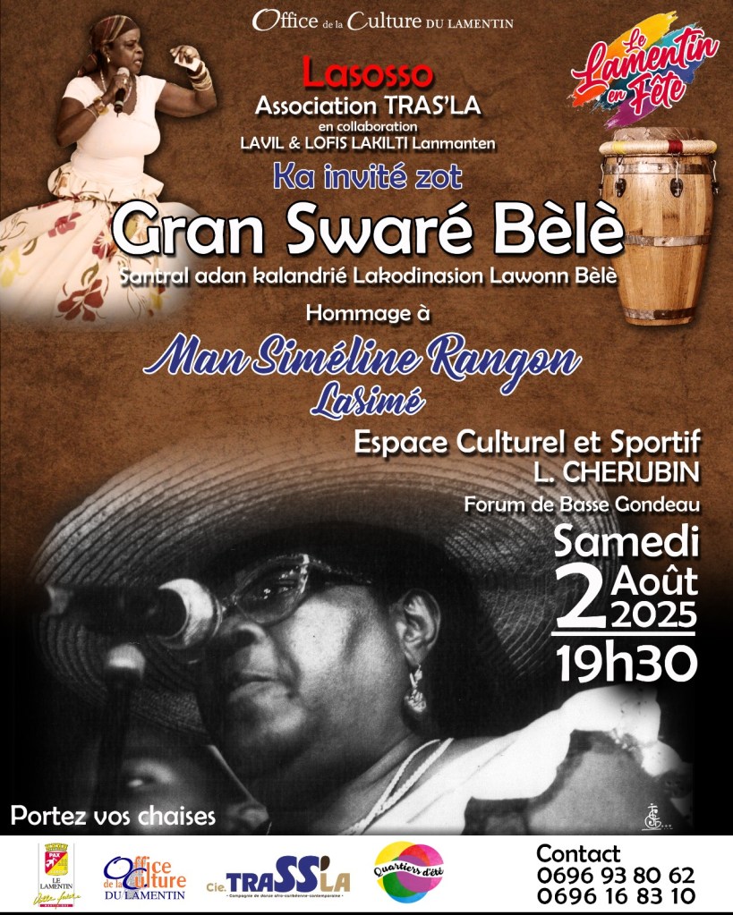 Direction la GRAN SWARE BELE à 19h30 à l’Espace Culturel et Sportif Loulou Chérubin (Basse Gondeau, Lamentin). Entrée libre. Infoline au +596 696 93 80 62.