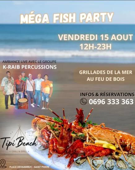 Vendredi 15 août de midi à 18h, on se retrouve au Beach Grill pour une journée détente les pieds dans le sable noir, entre cocktails, cuisine créole maison et vue imprenable sur la mer. Bonus : profiter d’un transat pour admirer l’un des plus beau coucher de soleil de la côte.