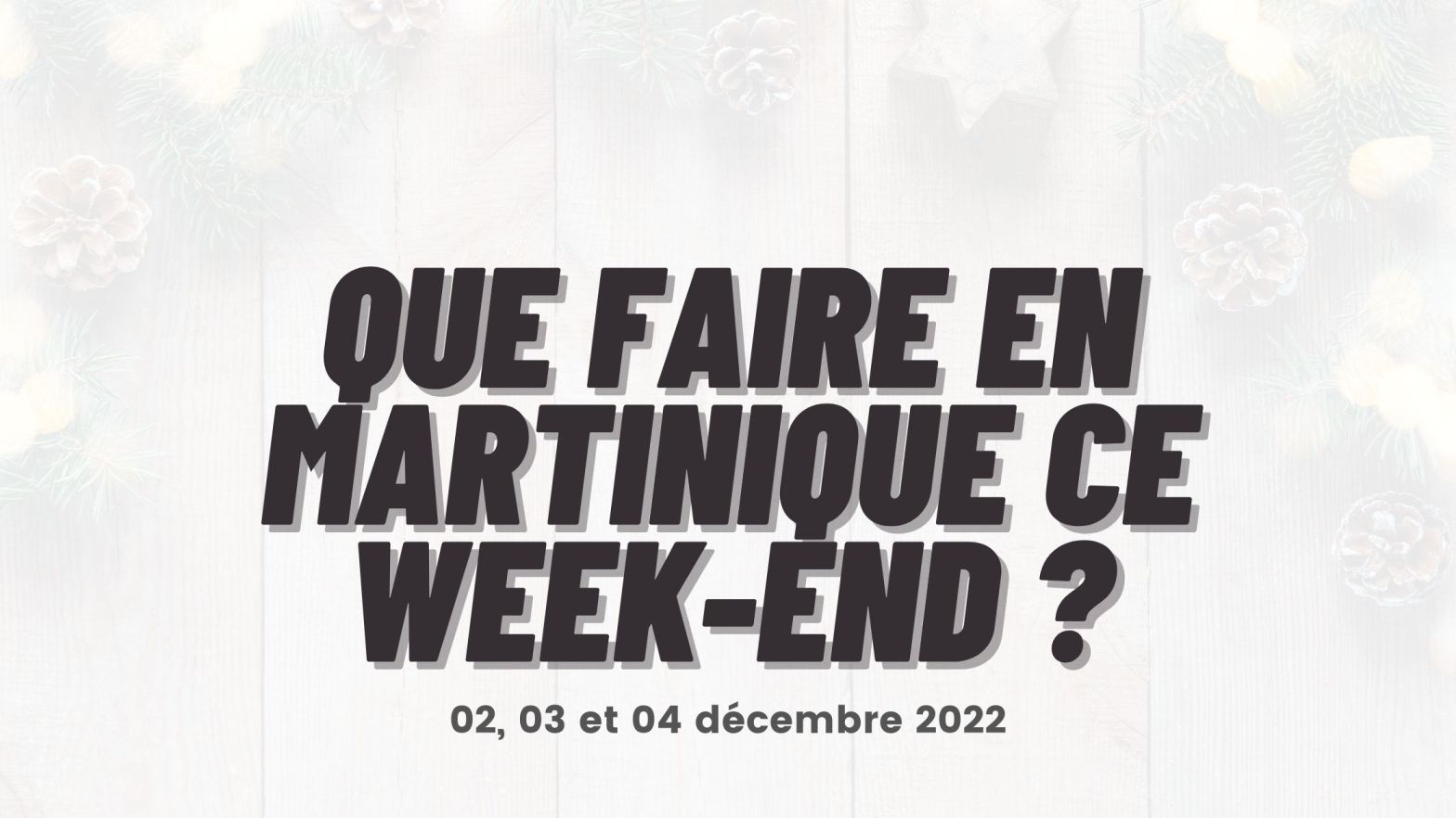 Le mois de décembre est synonyme de chanté Noël, de bonnes tables et de rencontres familiales. Tous les ingrédients sont donc là pour un chill coocooning et savoureux. Il vous reste plus qu’à choisir le lieu… Vendredi 02 décembre Pour l’afterwork 🎶 Dans le calme de la nuit, c’est entendu un grand bruit 🎵 …LireLire la suite « Que faire ce week-end en Martinique (2, 3 et 4 décembre 2022) ? »